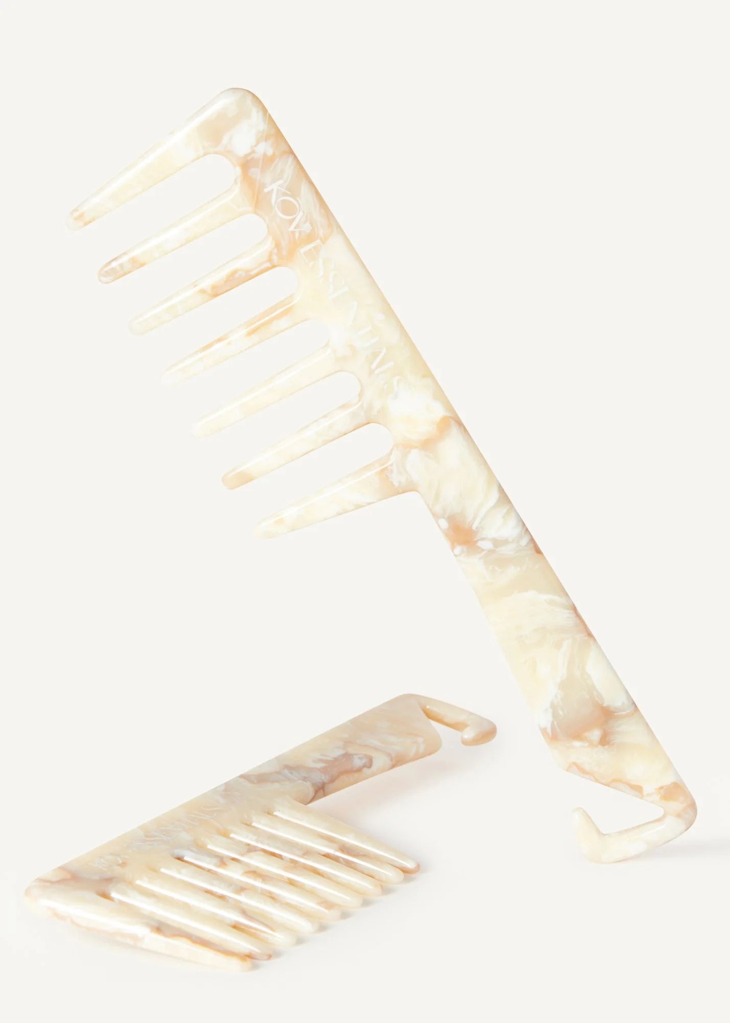 Thoughtfully designed to gently detangle and reduce breakage, the Vanity Comb is made from sustainable Cellulose Acetate and features rounded tips and a hook-friendly handle.